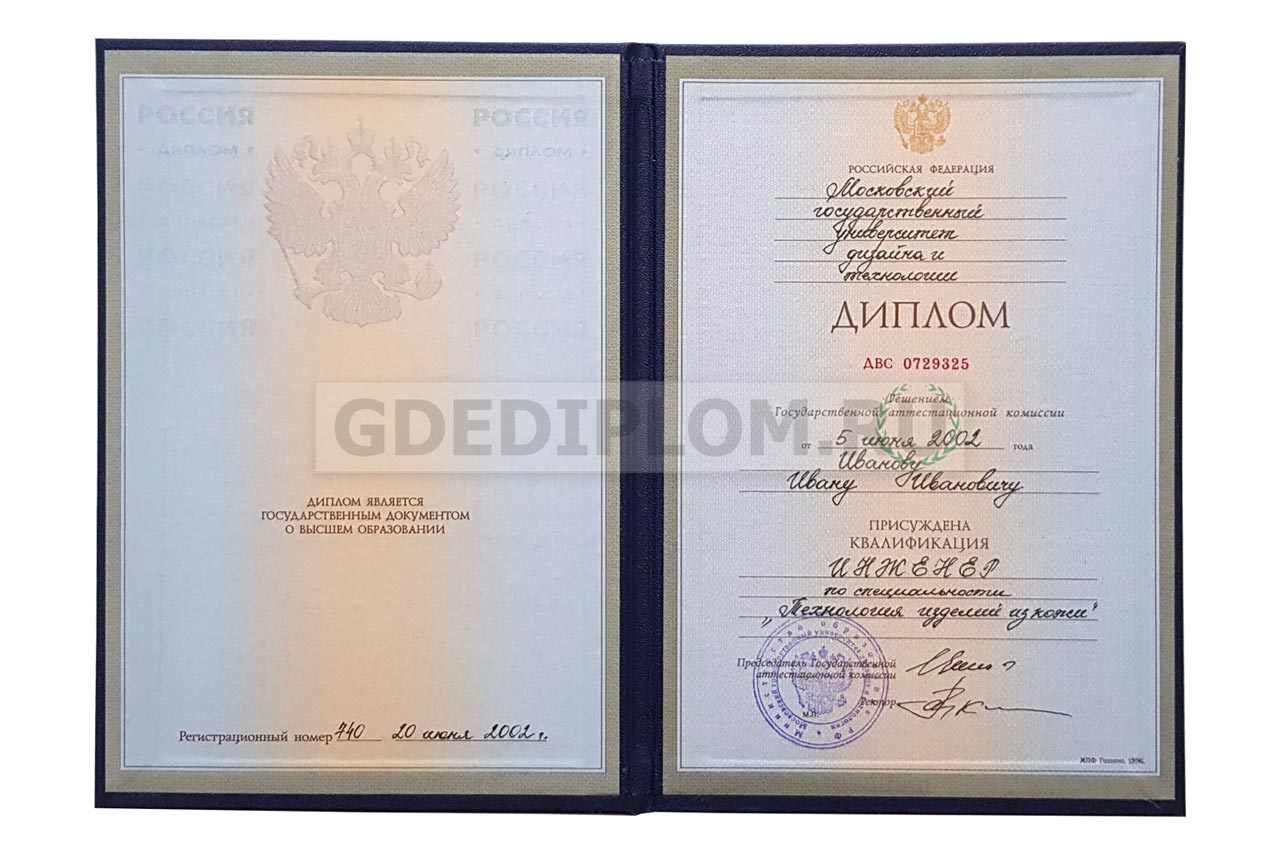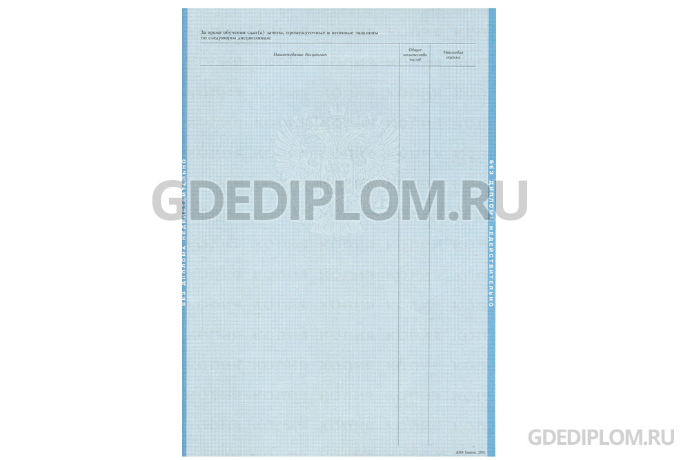 У нас на сайте вы можете заказать диплом о неоконченном высшем образовании любого ВУЗа Москвы, Петербурга и других городов России с 1996 года по настоящее время. При изготовлении мы используем только настоящие бланки Гознак!