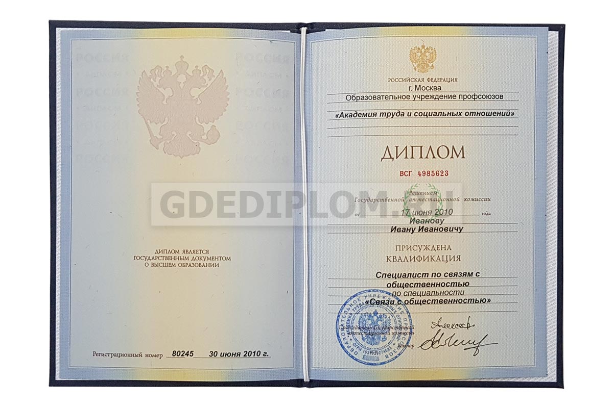 Диплом о высшем профессиональном образовании 2010-2011 годов