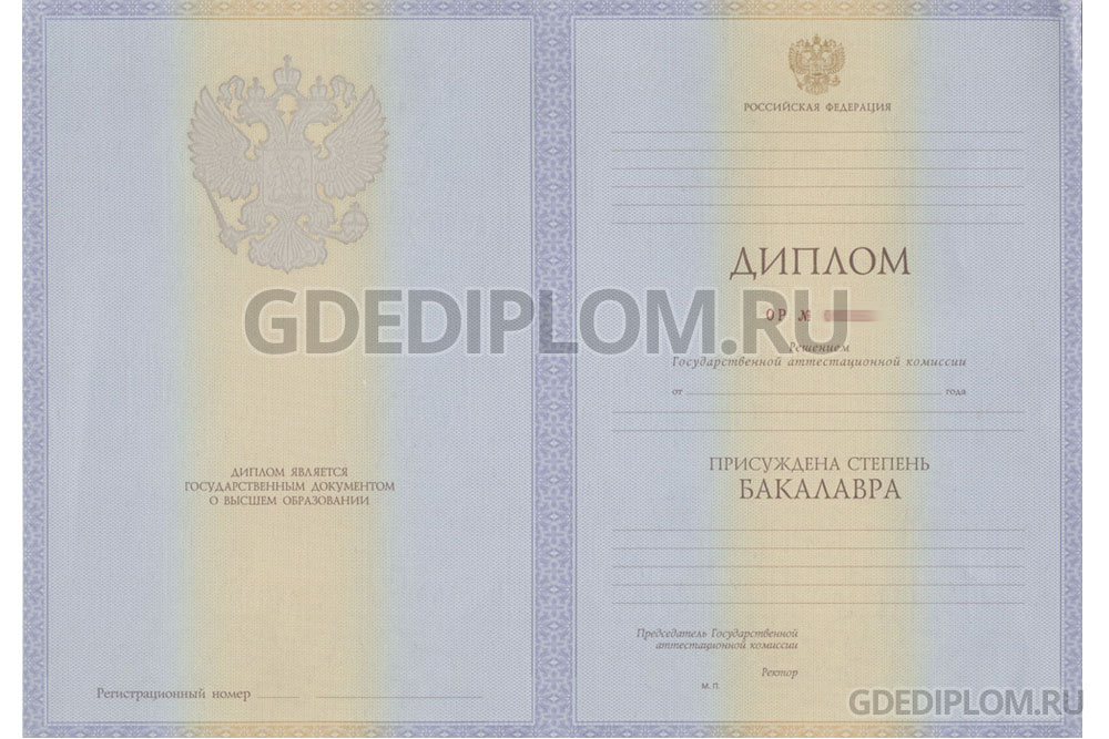 Диплом бакалавра государственного образца с выдачей в 2012, 2013 годах. Все предусмотренные степени защиты присутствуют. Срок обучения – 4-5 лет, формы обучения – очная, вечерняя, заочная, экстернат. Заполним как в ВУЗе, ставим мокрую печать, правильные подписи.